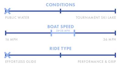 In 1997 we introduced a ski intended to make water skiing easier for everyone. Now we have decided to revive one of the finer inventions of the 90’s, the revolutionary Big Easy. Why waste energy getting out of the water? On the big easy you can pop right up and ski all day long. The massive 635 sq in platform and consistent width throughout the ski offers exceptional stability.