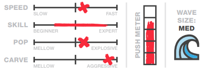 The new Darkstar breaks the mold of traditional surf style shapes. A slightly narrower profile and V bottom shape delivers speedy edge to edge transitions while driving the board through turns. Imagine the boost of the wake you’ll achieve as the Darkstar gains momentum through the bottom turn up to the lip of the wake. A diamond shaped tip & tail also deliver a clean water release aiding in the pace of the Darkstar. Ideal for intermediate to advanced surfers looking to up their game in the wave.
